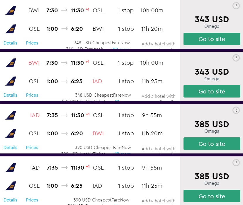 Amazing deal: Washington DC or Baltimore to Scandinavia: Norway, Denmark or Sweden flight round-trip as low as $343.