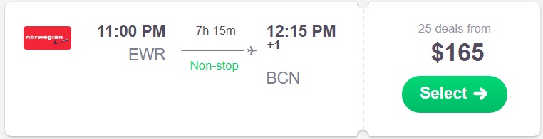 New York to Barcelona from $165 O/W