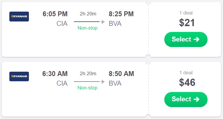 Rome to Paris from $21 O/W