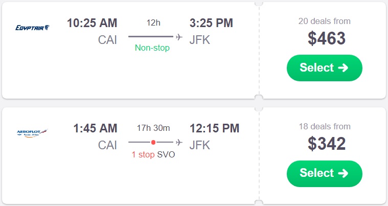 Cairo, Egypt to New York for $342