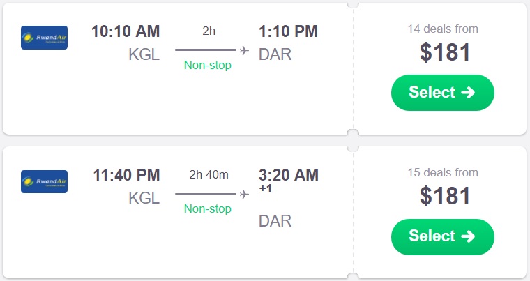 Kigali, Rwanda to Dar Es Salaam for $181