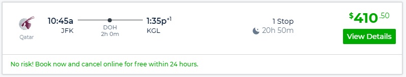 New York to Kigali, Rwanda for $410