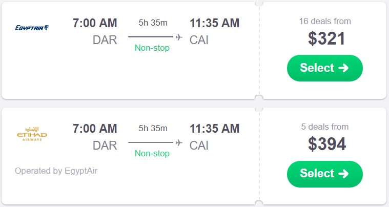 Dar Es Salaam, Zanzibar to Cairo, Egypt for $312