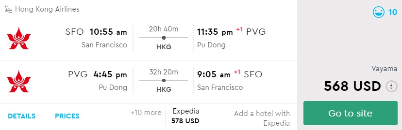 Amazing deal: San Francisco to Shanghai or Bangkok flight round-trip as low as $568.