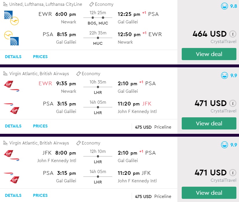 Amazing deal: New York, San Francisco or Los Angeles to Pisa, Italy flight round-trip as low as $464.