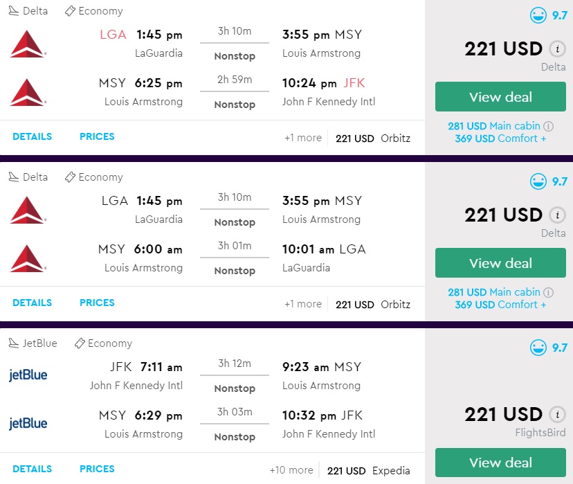 Amazing deal: New York to New Orleans and vice versa flight, round-trip as low as $221.