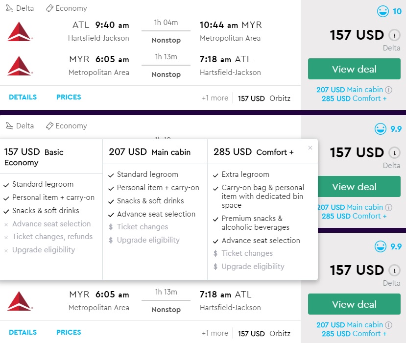 Amazing deal: Atlanta to Myrtle Beach, Savannah, Charleston, Tallahassee, Pensacola and vice versa flight round-trip as low as $157.