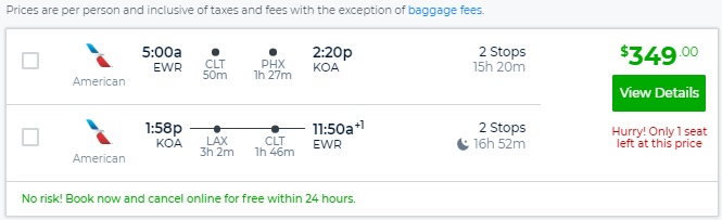 Amazing deal: Newark to Hawaii: Kona and vice versa flights round-trip as low as $349.