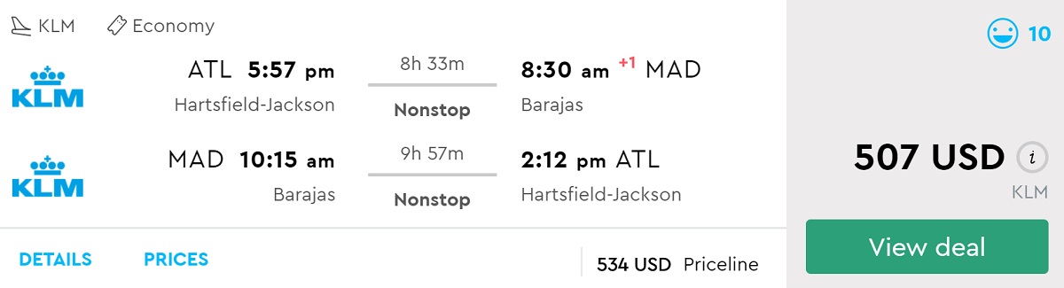 Amazing deal: Atlanta to Madrid (Spain) flight round-trip as low as $507.