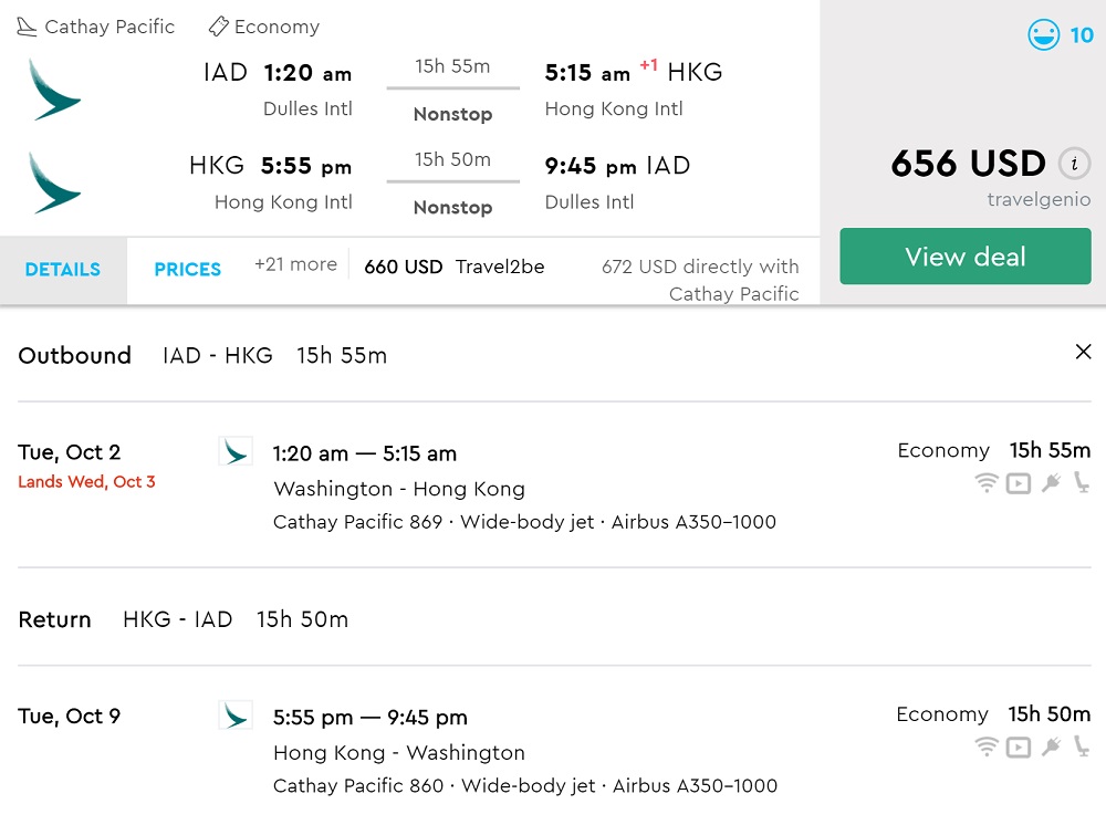 Amazing deal: Washington DC to Hong Kong flight round-trip as low as $656.