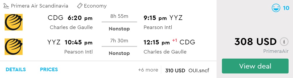 Amazing deal: Toronto to London or Paris and vice versa flight round-trip as low as C$396/£249/€265.