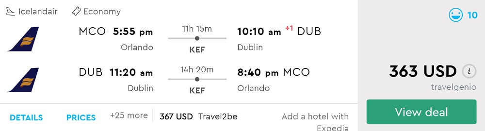 Amazing deal: Orlando to Dublin (Ireland) flight round-trip as low as $363.
