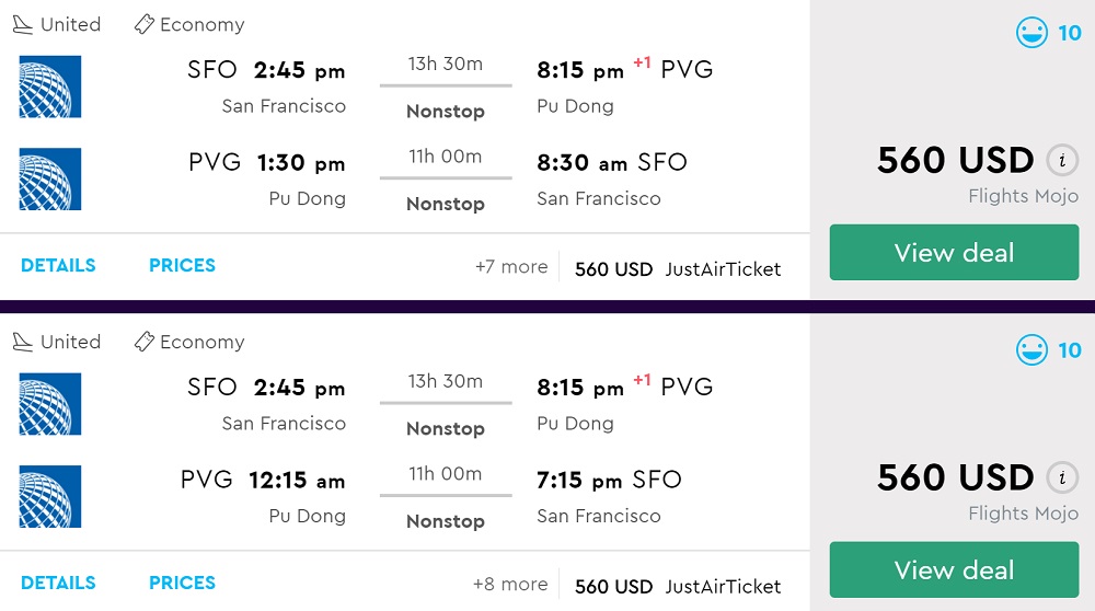 From SFO to  Shanghai