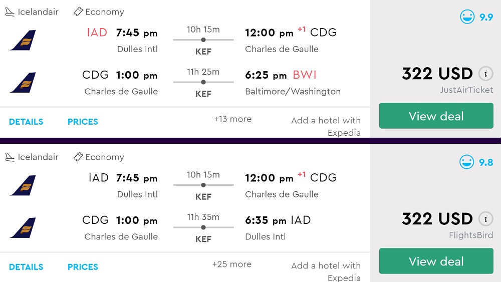 Washington DC to Paris (France) from $322 round-trip