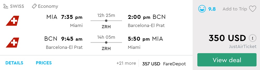 Amazing deal: Miami to Barcelona (Spain) flights round-trip as low as $350.