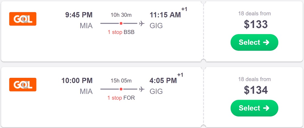Miami to Rio de Janeiro (Brazil) from $133 one-way