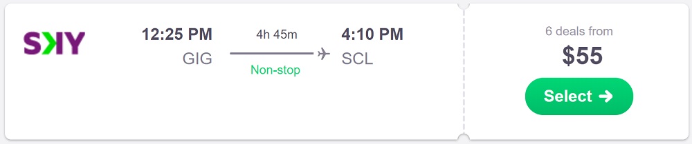 Rio De Janeiro (Brazil) to Santiago (Chile) from $66 one-way