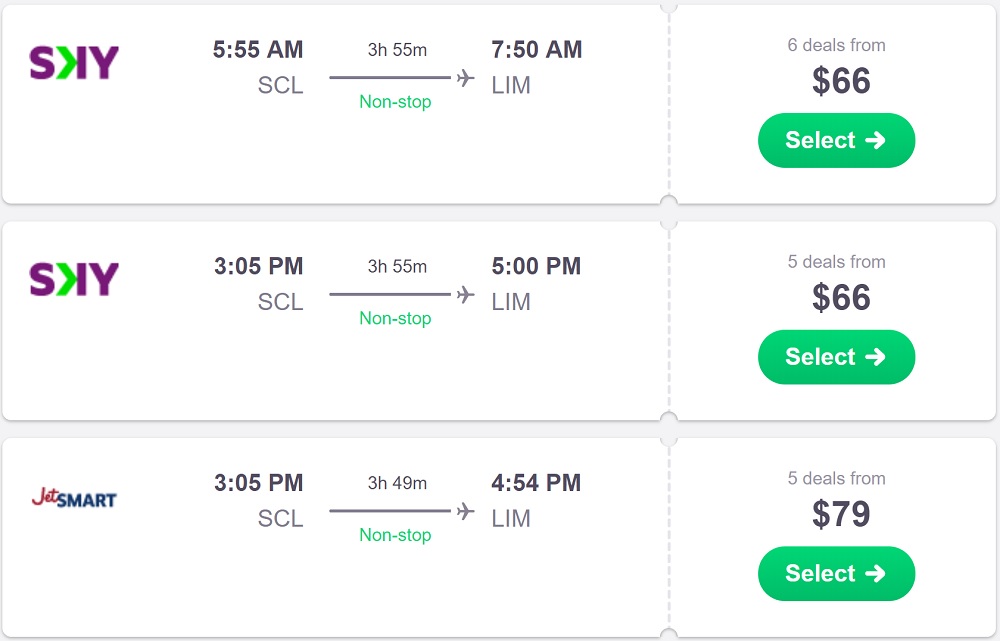 Santiago (Chile) to Lima (Peru) from $66 one-way