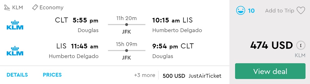Amazing deal: Charlotte, Los Angeles, Seattle or Miami to Lisbon (Portugal) flight round-trip as low as $474.