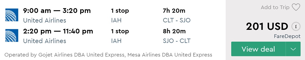Amazing deal: Charlotte or Dallas to San Jose (Costa Rica) flight round-trip as low as $201.