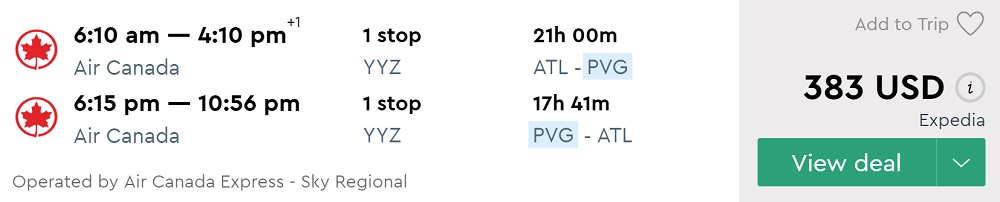 Amazing deal: Atlanta, Minneapolis or Miami to Shanghai (China) flight round-trip as low as $383.