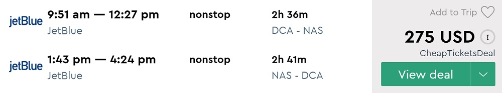 Amazing deal: Washington DC to Nassau, Bahamas flight round-trip as low as $275.