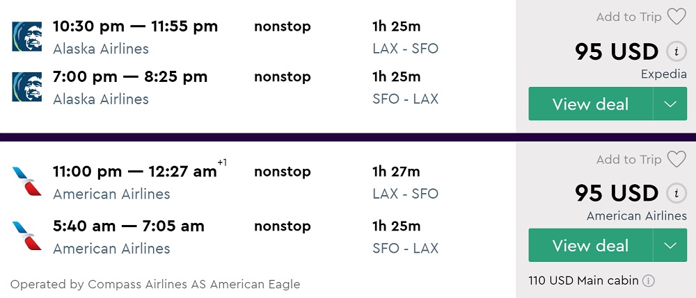 Amazing deal: Los Angeles to San Francisco and vice versa flights round-trip as low as $95.