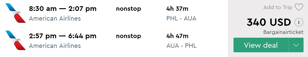 Amazing deal: Philadelphia to Aruba flights round-trip under $340.