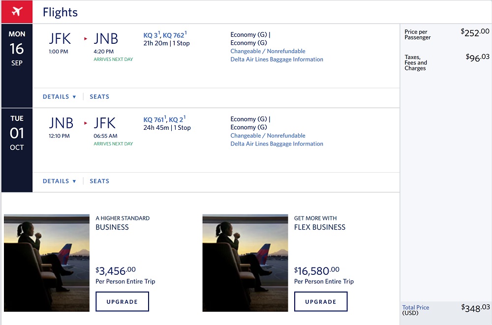 https://www.delta.com/cart/activity/tripsummary.action?cacheKeySuffix=c7903097-ebe2-4096-b353-24f059a91e35&app=sl-sho&itinSegment[0]=0:G:JFK:NBO:KQ:3:FEB:08:2019:0&itinSegment[1]=1:G:NBO:JFK:KQ:2:FEB:19:2019:0&tripType=multiCity¤cyCd=USD&paxCount=1&fareBasis=GLPRUS:GLPRUS&numOfSegments=2&exitCountry=us&cabin=MAIN&vendorRedirectFlag=true