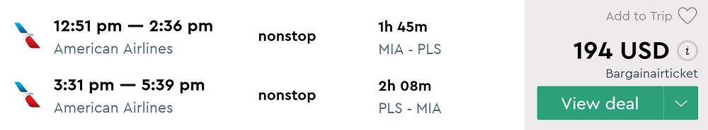 Nonstop via AA! Miami to Turks and Caicos for $59 one-way ($194 round-trip)