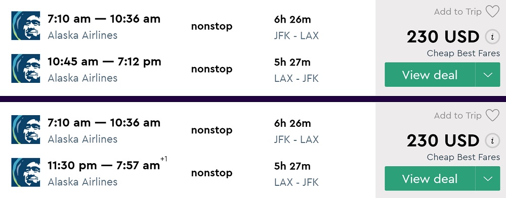 Amazing deal: New York to Los Angeles and vice versa flights round-trip as low as $230.