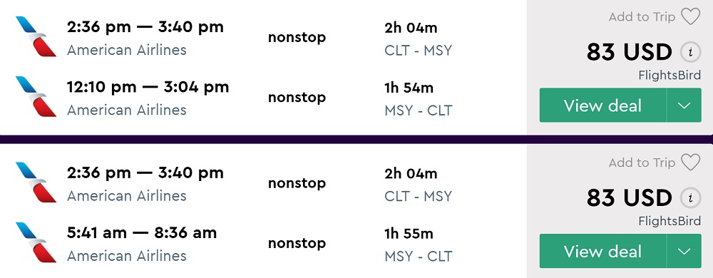Amazing deal: Charlotte to New Orleans and vice versa flight round-trip as low as $83.
