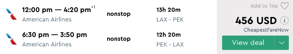Amazing deal: Los Angeles to Beijing (China) flight round-trip as low as $456.