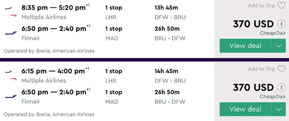 Amazing deal from Dallas to Zurich or Brussels flights round-trip as low as $370.
