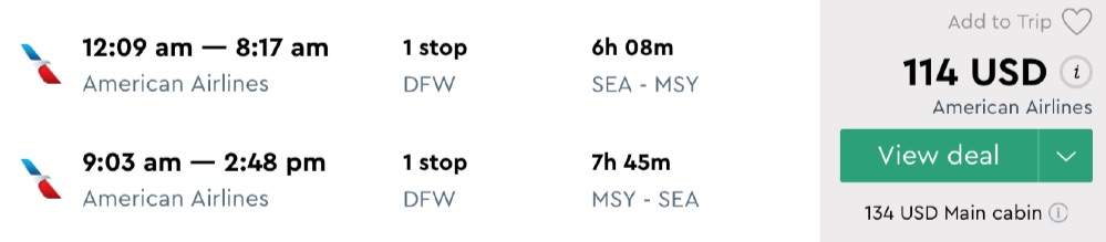 Amazing deal: Seattle to New Orleans or Tampa, FL and vice versa flights roundtrip as low as $114.