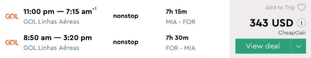 Amazing deal: Miami to Brazil: Fortaleza flight round-trip as low as $343.