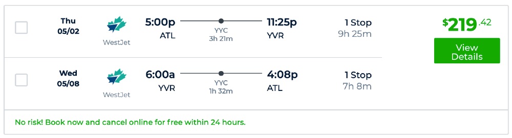 Amazing deal: Atlanta to Vancouver BC, Canada and vice versa flight round-trip as low as $94 one-way.