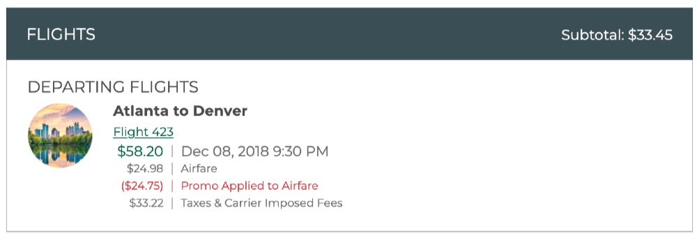 | *Discount is for nonstop, domestic travel, on specific dates in select markets. The following blackout dates apply: Dec. 21-22, 26-27, 30, 2018; Jan. 1-2, 2019. 3 day advance purchase applies. Seats are limited. Restrictions apply.