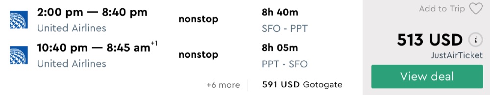 Amazing deal: San Francisco to French Polynesia: Tahiti flight round-trip as low as $513