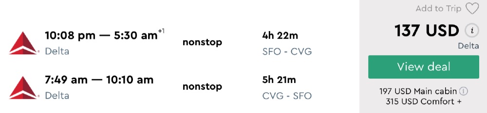 Amazing deal from San Francisco to Cincinnati and vice versa flights round-trip as low as $137.