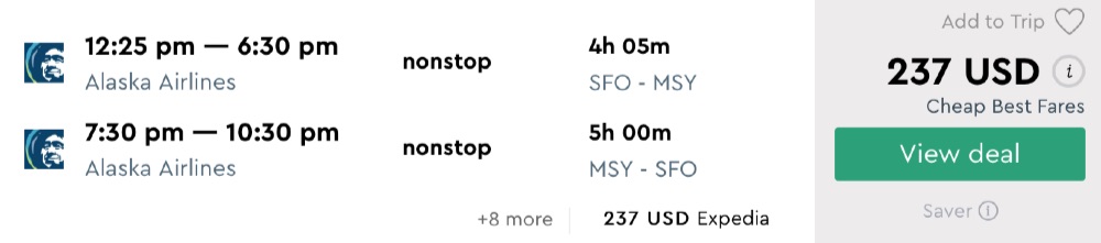 Amazing deal: San Francisco to New Orleans and vice versa flight, round-trip as low as $237.