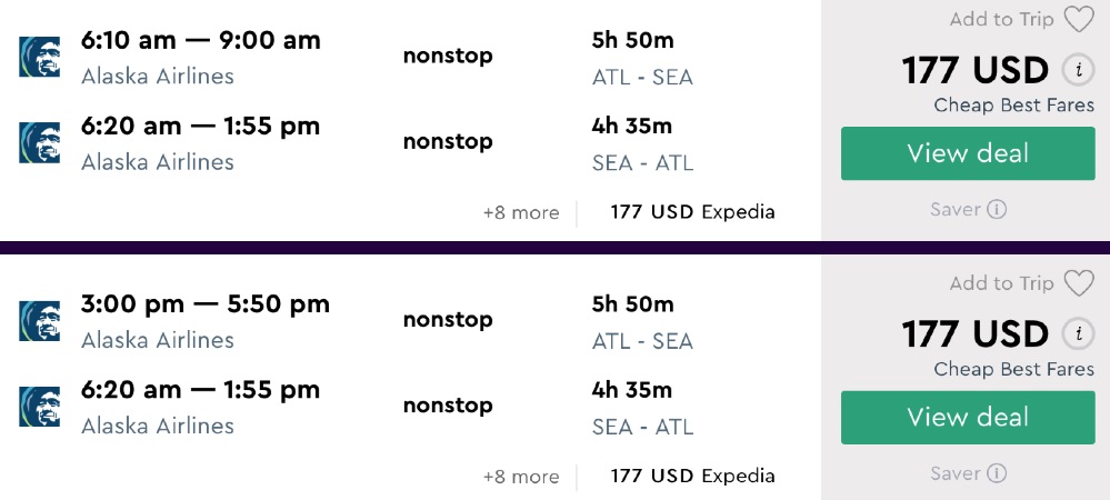 Amazing deal: Atlanta to Seattle and vice versa flight round-trip as low as $177.