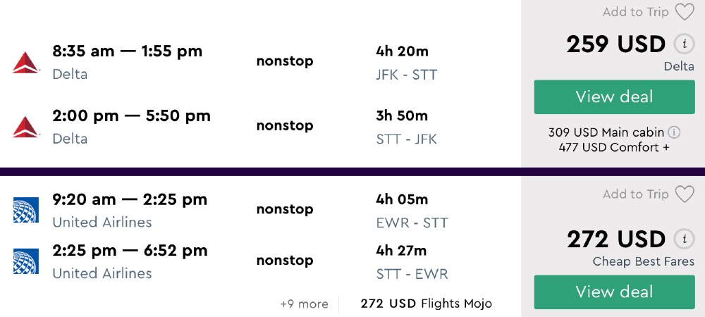 Amazing deal: New York to the Caribbean: St. Maarten, St. Thomas or Aruba flight round-trip as low as $259.