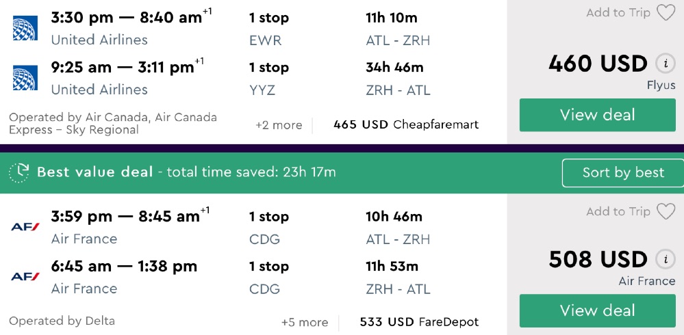 Amazing deal from US Cities to Zurich (Switzerland) flights round-trip as low as $332.