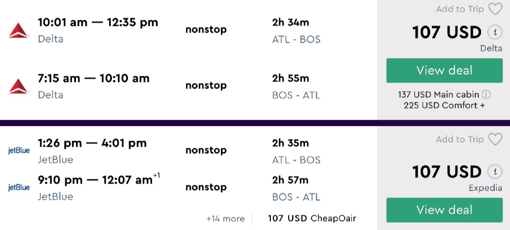 Amazing deal: Atlanta to Boston and vice versa flight round-trip as low as $107.