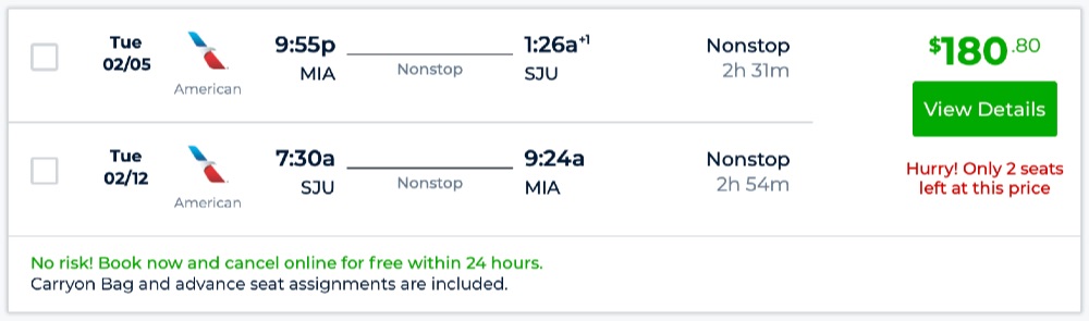 From MIA from $180