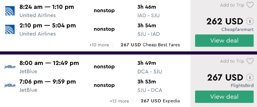Amazing deal: Miami, Orlando, Washignton DC, New York to Puerto Rico: San Juan flight roundtrip as low as $154.