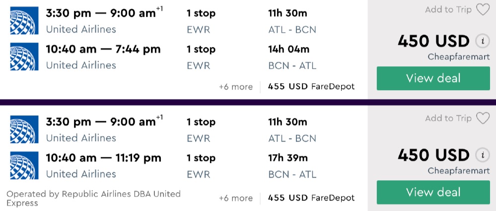 Amazing deal: Atlanta to Spain: Barcelona or Madrid flights round-trip from $450.
