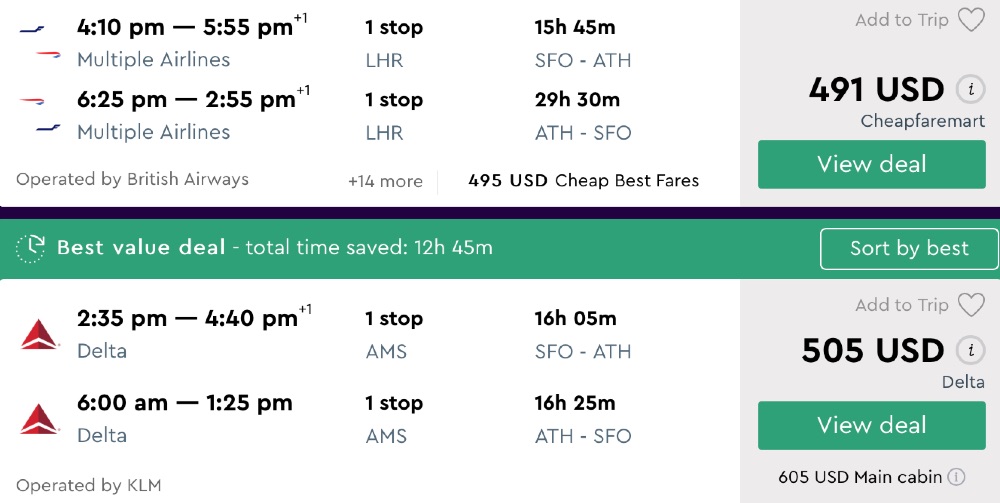 Amazing deal: Houston, San Francisco, Washington DC, Denver to Athens (Greece) flight round-trip as low as $491.