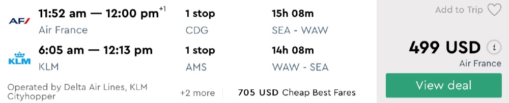 Amazing deal: US Cities to Poland: Warsaw flight roundtrip as low as $499.